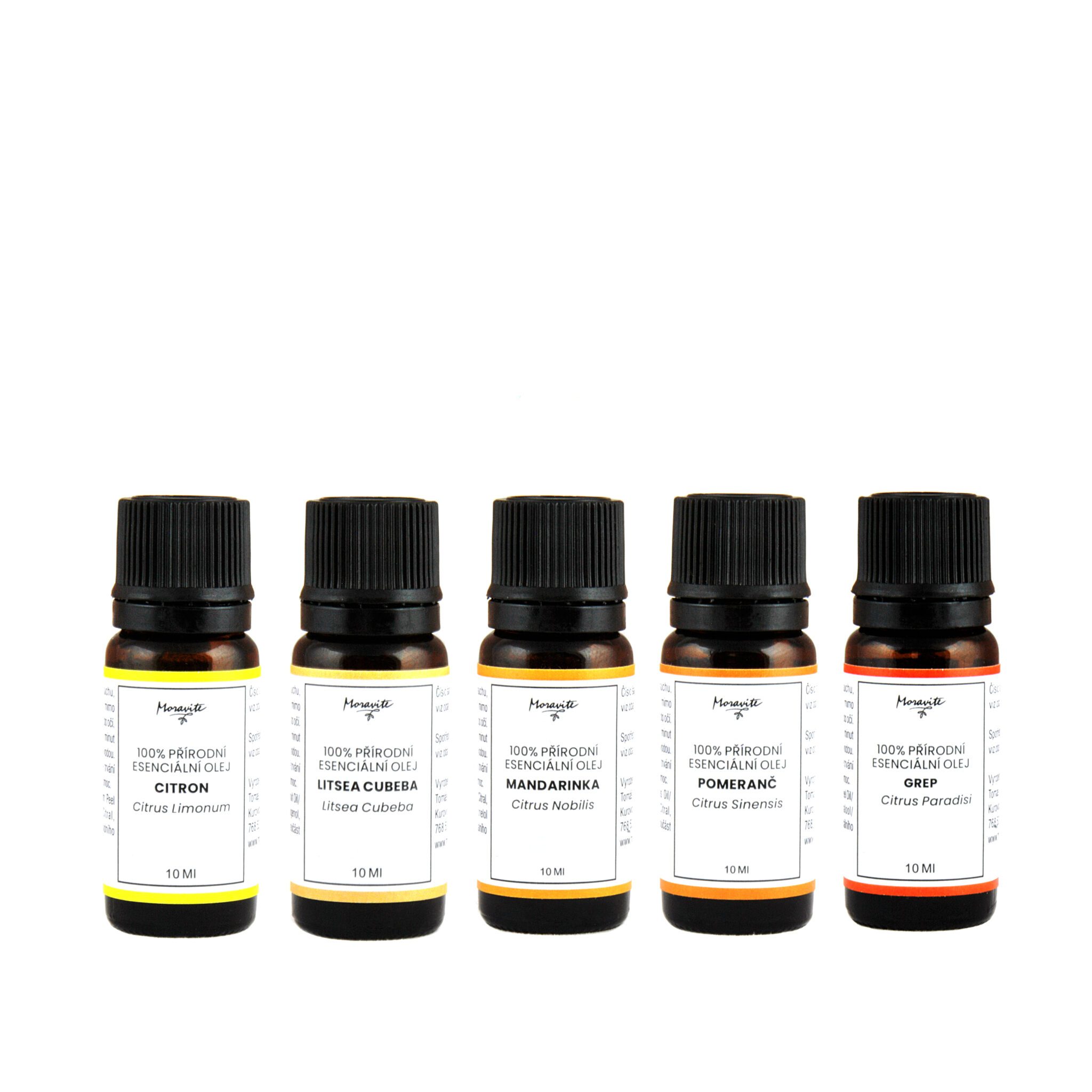 1x esenciální olej Citron, 1x esenciální olej Litsea cubeba, 1x esenciální olej Mandarinka, 1x esenciální olej Pomeranč, 1x esenciální olej Grep